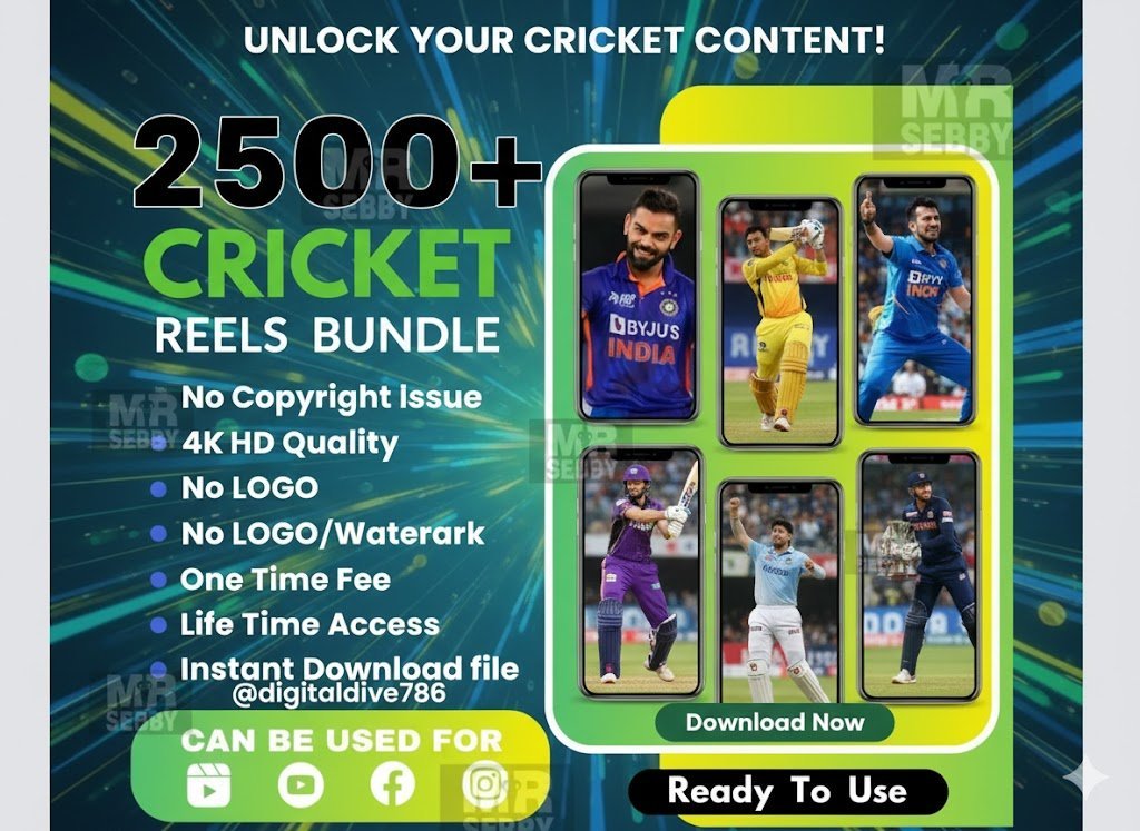 ๐Ÿ Ultimate 2500+ Premium Cricket Reels Bundle (No Copyright & No Watermark)